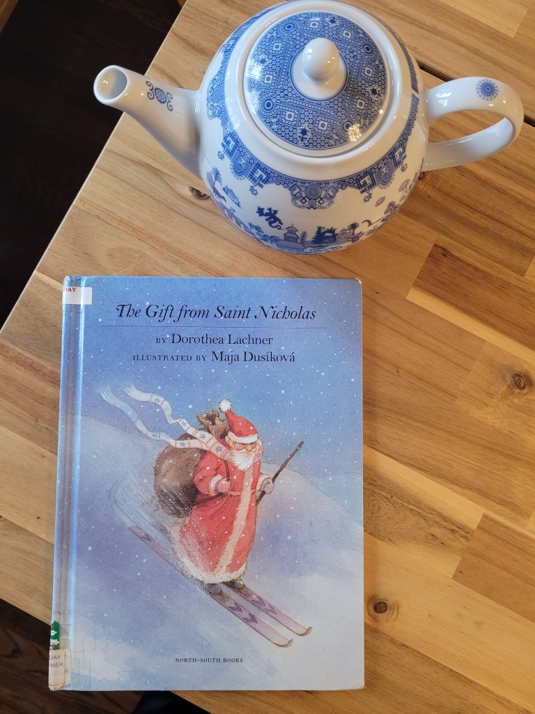 Magic and hope are found in The Gift from Saint Nicholas by Dorothea Lachner. It is a Christmas story, but it is also a beautiful story of a community surrounding the comfort of a large pot of tea. In a village plagued by snowstorm after snowstorm, the people have stopped bothering to shovel and the snow has now divided the village, separating them all from each other. No one is going out and everyone is lonely in their homes. Two children make a wish to Saint Nicholas to bring everyone together and Saint Nicholas does just that with a mysterious package, that eventually leads to a cozy gathering of villagers in Grandfather Gregor’s warm kitchen all sharing a generous tea together.