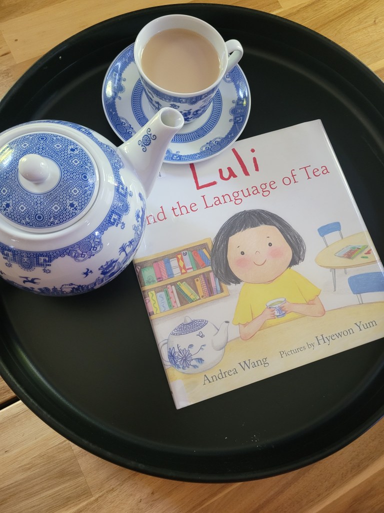 In Luli and the Language of Tea by Andrea Wang, Luli connects all the kids in her mixed language daycare class with a pot of tea. Before Luli shared tea with her classmates, the children were always quiet, not knowing how to communicate since they all spoke different languages. The similarity of the word for tea in so many languages is what inspired the author, and it is so beautiful to see all the kids understanding the significance of the tea shared together. The endnotes tell about tea customs across the world and the end pages show international teacup designs. One thing that draws my attention over and over again is the unifying ability of tea. I always love stories, children and adult fiction, that show this.