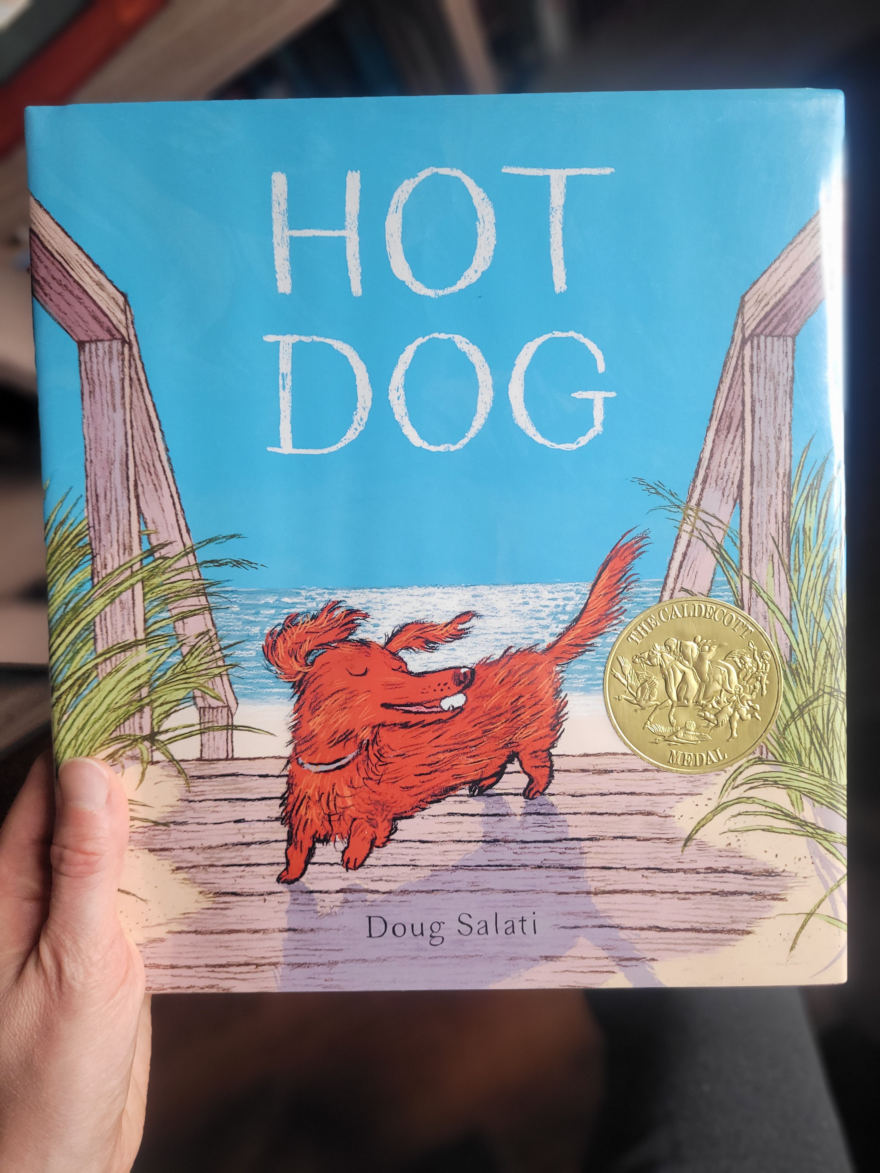 A trip to the beach can be a simple solution to a hot day or it can be a complicated solution, depending on how many sand toys you need to pack and how many bodies you need to sunscreen. If you love spontaneous beach days, this 2023 Caldecott Medal winner, Hot Dog by Doug Salati is just the book for you. Last summer, I took my kids on quite a few spontaneous beach days. We even went more than once a week. After doing that a couple times, they said, “No more beach days this week, Mommy. We’re too tired.” Hot Dog is told with very few words. Most of the story is expressed through the illustrations and the interactions of the dog and his owner. It’s interesting how different visual devices and color palates are used to show the mood and even temperature of the environment. I actually passed over this book the first time I saw it on the library shelf. It wasn’t until I listened to a Read Aloud Revival podcast and heard Sarah Mackenzie talking about this book and the things to look for in the illustrations that I went back and borrowed it. When I finally read it, the kids and I were completely delighted with what we found.