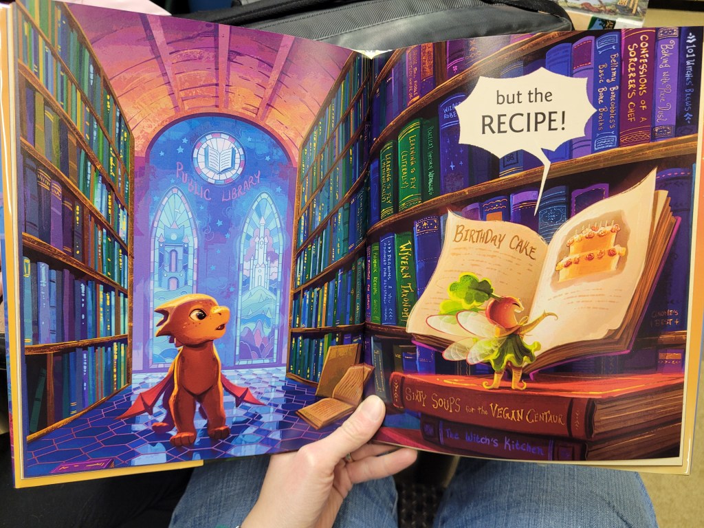While at the library earlier, all three of us were delighted to find a new Bakery Dragon book, The Bakery Dragon and the Fairy Cake, on the library’s shelf. (In 2024 I wrote about the first Ember book by Devin Elle Kurtz in a blog post). We were happy to see the return of Ember, the bread baking dragon, and his floury adventures. I read the book with my kids that night when we finally settled down on the couch for a few minutes after pajamas and teeth, shortly before bed.
